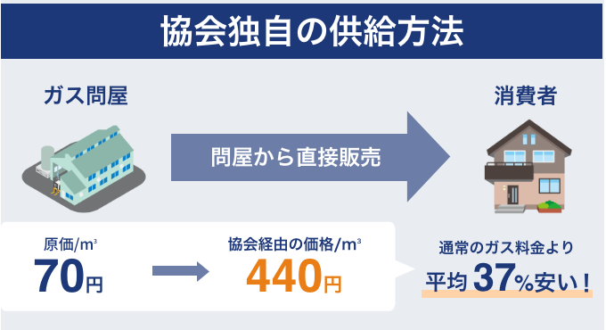 協会は、独自の供給方法を確立。中間業者を減らし、ガスを卸売り価格で直接供給できる仕組みを作りました。