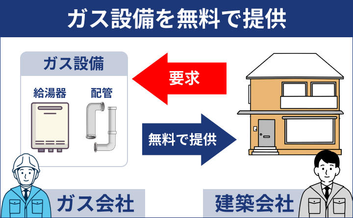 建築会社はガス会社に過剰なサービスを要求し、ガス設備を無料で提供してもらいます。