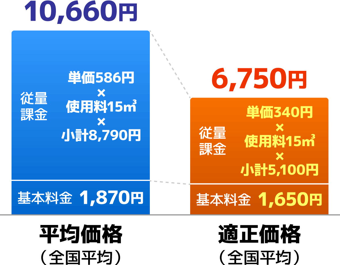 安くなりますか? - 使用量・地域・現単価で変わりますが、15㎥/月目安で平均と適正の差は月約3,900円(年約47,000円)が参考値です。
